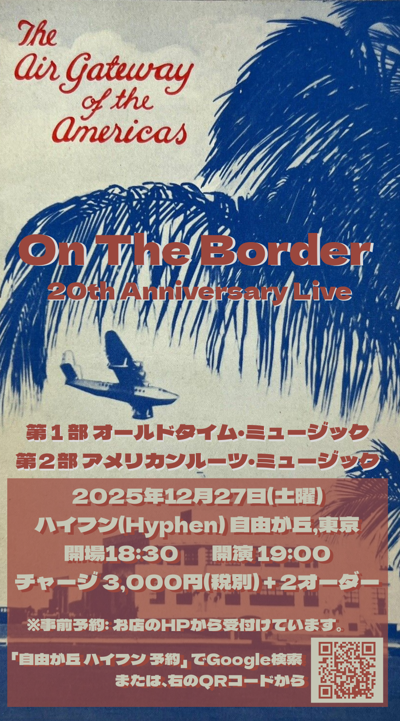今後のライブ: 2025.12.27(土) 自由が丘ハイフン 20周年記念ライブ (開場:18時半 開演:19時)
